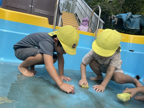 そこで今日は、子どもたちと一緒にプール掃除をして「プールおさめ」をしました。