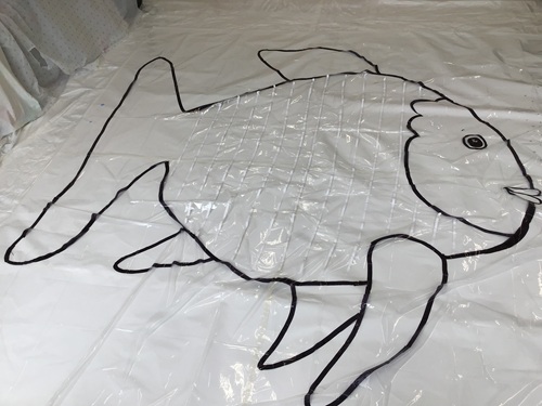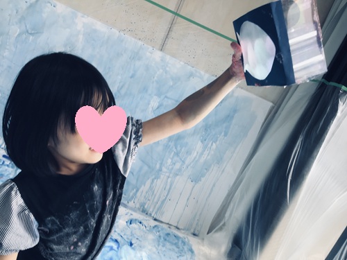 大きなにじいろのさかなを作った後は、自分だけのさかなを作り、窓から差し込む光に照らしてその美しさを楽しんでいました。