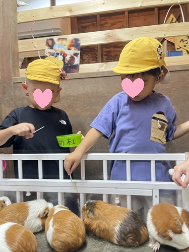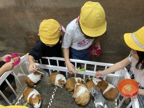 朝ご飯をみんなで食べ、こどもの杜の動物たちと触れ合い、バスで保育園へ戻ります。