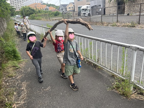 と測りながら選び、みんなで力を合わせて持ち帰ります。