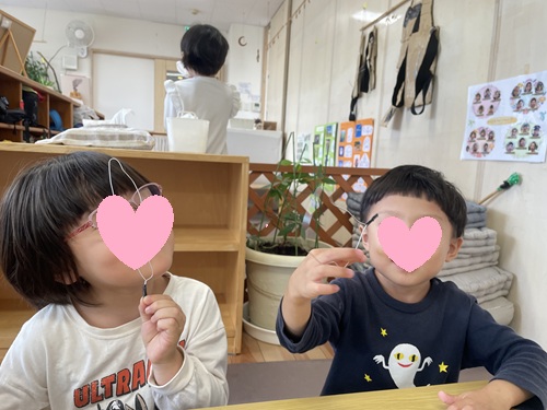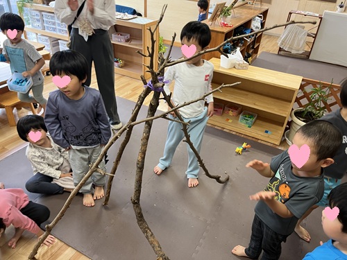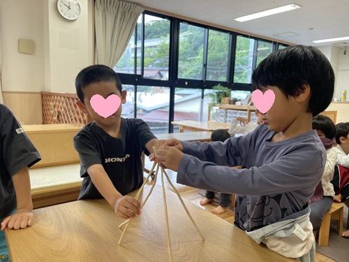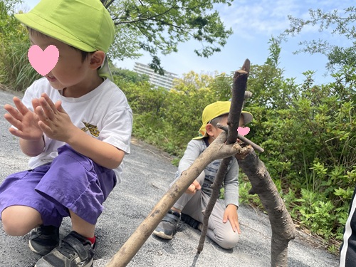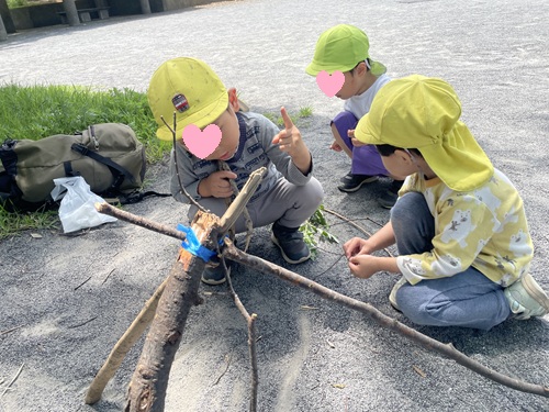 地面に落ちていた枝を手にした子どもたちが、枝を組み合わせながらふとつぶやきました。
