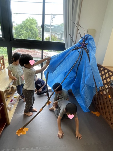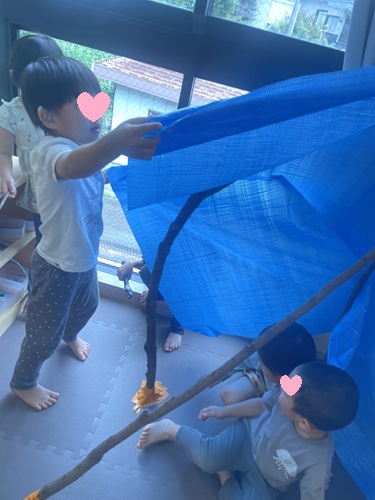 完成したテントをきっかけに、遊びはさらに広がっていきます。