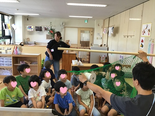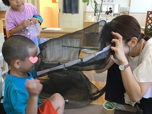 夏になると、園庭で見つけたセミの抜け殻や幼虫をきっかけに、“虫博士”の活動も始まりました。