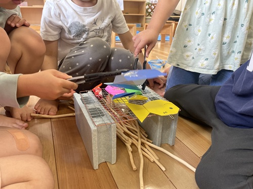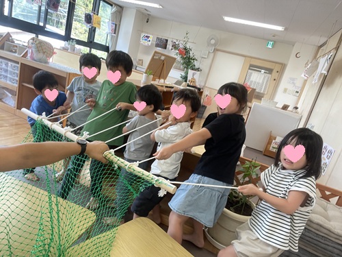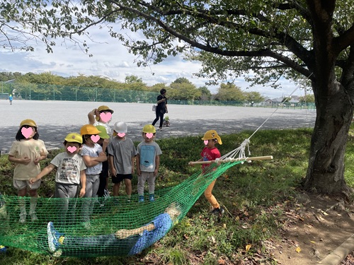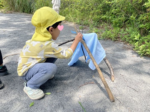 テントから始まったこの遊びは、キャンプ、虫博士、ハンモック、たき火研究へとつながり、今もなお子どもたちの中で続いています。子どもたちの「やってみたい」という気持ちが、学びとなり、成長となっていく。その姿を、これからも大切に見守っていきたいと思います。