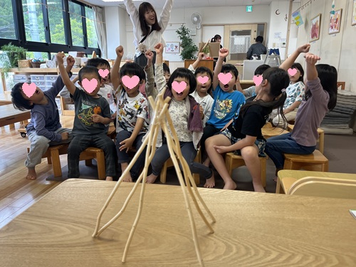 試行錯誤の末、テントが完成したときの子どもたちの表情は、達成感と誇らしさに満ちていました。