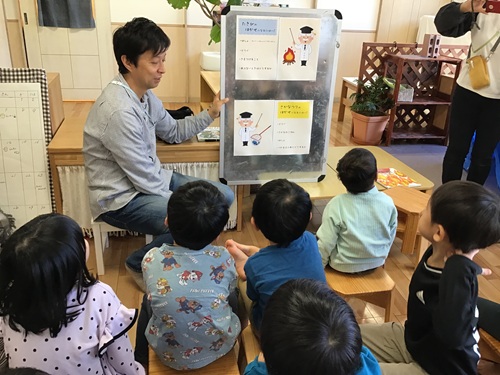 消防署へ行く日は、少し緊張しながらも、考えた質問をしっかりと伝えていた子どもたち。