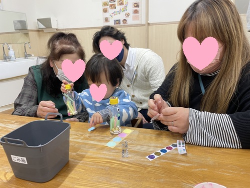 秋頃からは、公園で拾ったどんぐりをペットボトルに入れて、音の鳴るおもちゃ作りにも挑戦。音楽に合わせて鳴らしながら、楽しそうに遊ぶ姿が見られるようになりました。