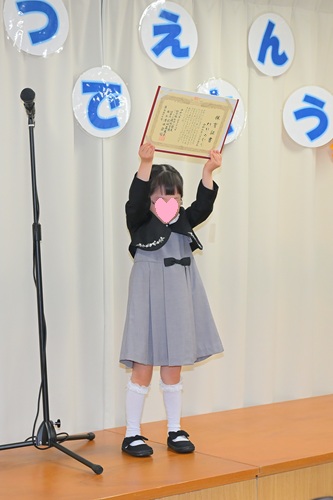 ハートの森保育園では、一人ひとりに向けた手書きのメッセージ入り、世界にひとつだけの保育証書を授与しています。