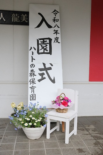 園の横にある桜も前日の雨に散ることなく咲き続ける中、入園式が行われました。